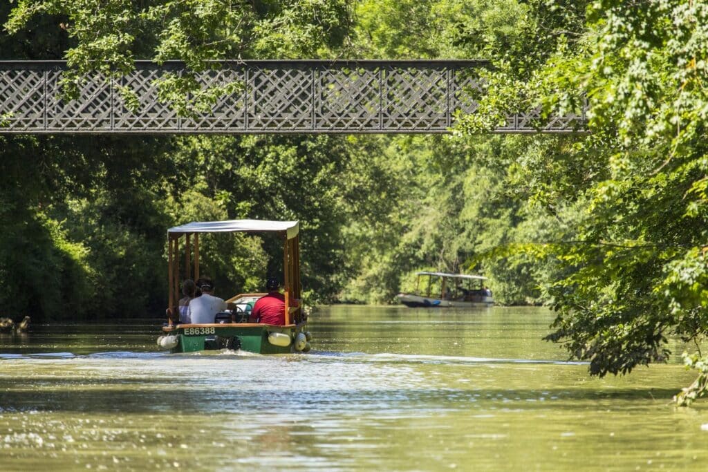 Une croisière bucolique sur la rivière Baïse à Nérac, l’un des plus beaux ports fluviaux de France. Pendant une heure de balade, sur un coutrillon en bois, reproduction des gabares du XIXe siècle, capitaine et guide content la jeunesse du Prince Henri, futur roi de France, le Parc royal de la Garenne et ses jardins. Un spectacle visuel ou l’on s’amuse à apercevoir à cadence réduite les fontaines de style Renaissance et à scruter les marques de crues historiques du Pavillon des Bains du Roy. Le clou du spectacle : le passage de l’écluse de Nazareth d’une largeur de 4,20m pour un bateau de 4,10m.