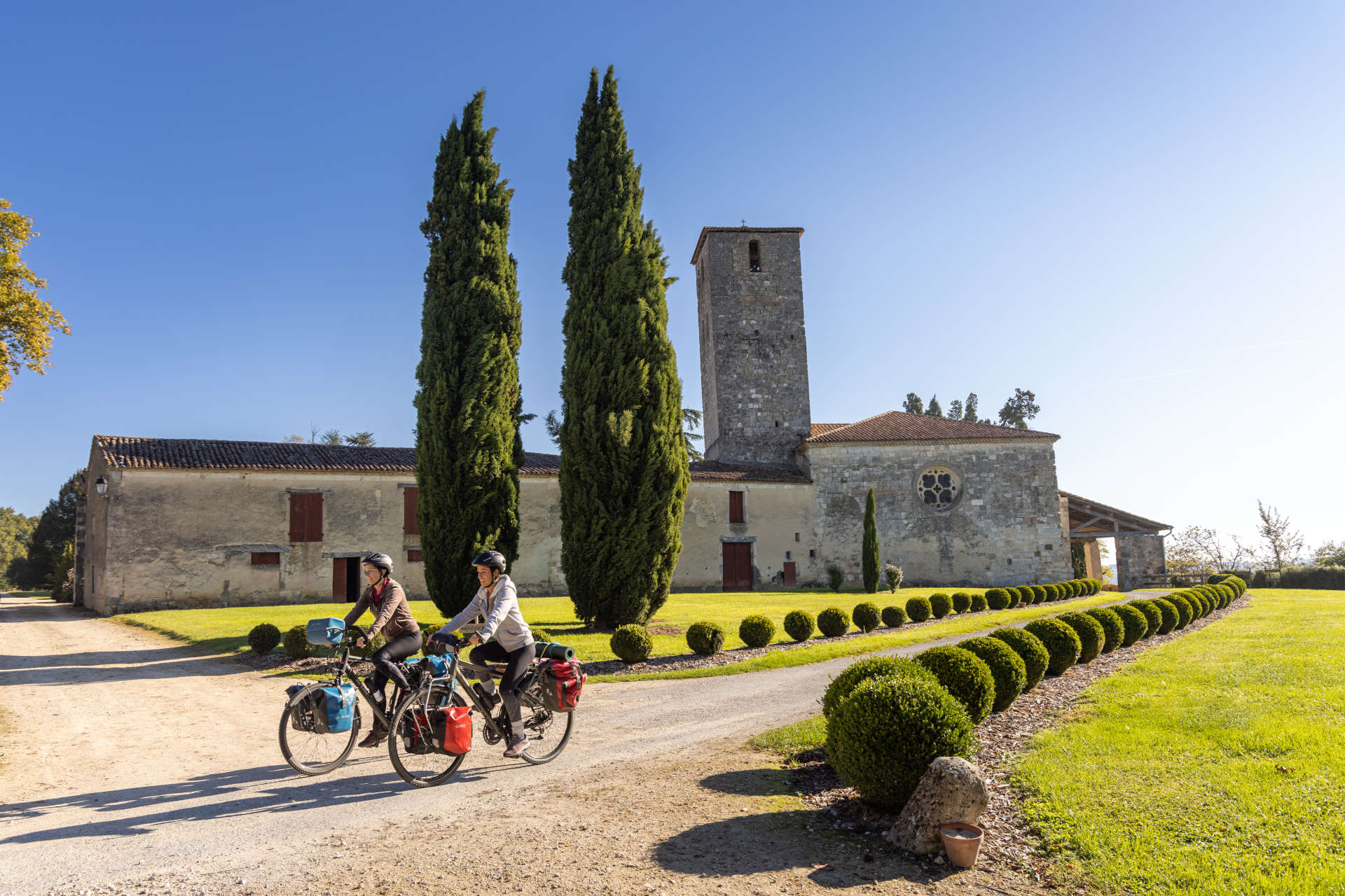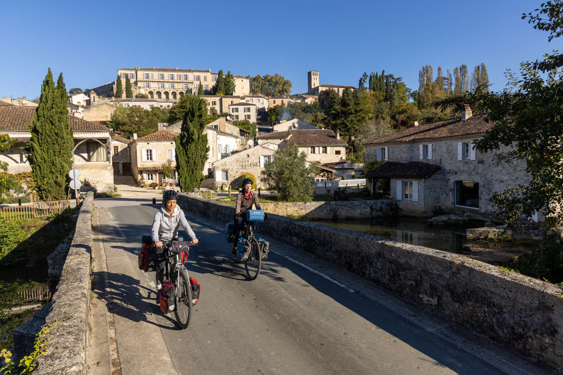 Elle sillonne Paris et l’Île-de-France, la vallée de la Loire, passe par Bordeaux avant de rejoindre le Lot-et-Garonne par le Canal des 2 Mers à Vélo. A Feugarolles, vous quitterez la voie verte pour filer en direction de la forêt des Landes par les petites routes bucoliques de l’Albret. De la bastide de Vianne au charmant village de Sos, en passant par Mézin, porte d’entrée du pays de l’Armagnac et Poudenas et son château aux allures toscanes, nul doute que vous trouverez partout sur ces terres lot-et-garonnaises des prétextes à tester les saveurs de l’Armagnac, des vins de Buzet ou du foie gras.